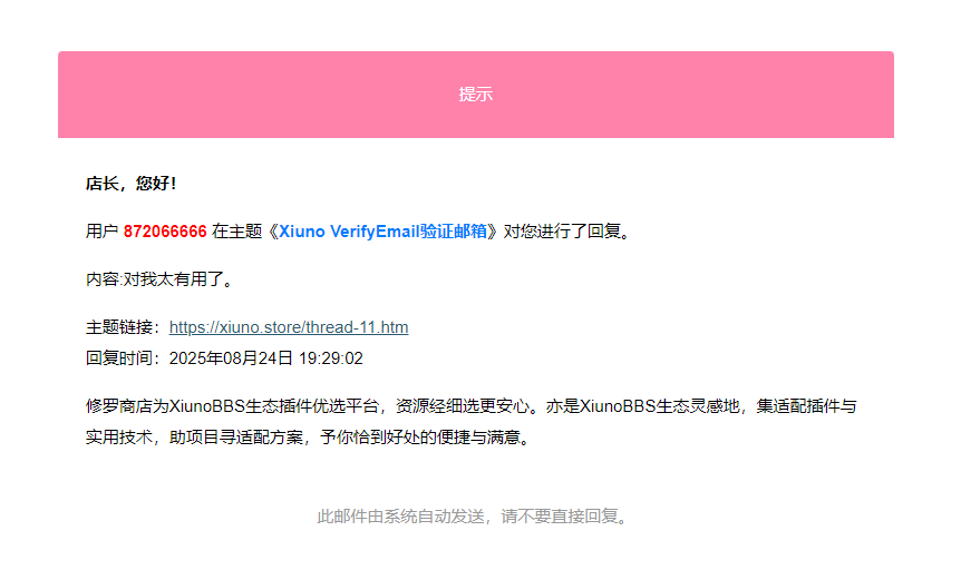 新回帖邮件通知楼主或用户帖子被引用通知用户。
